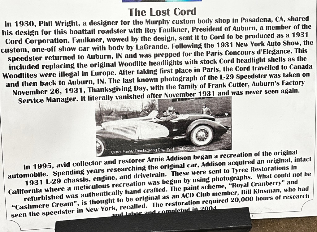 1931 Cord “The Lost Cord” This was a recreation of a one off car.