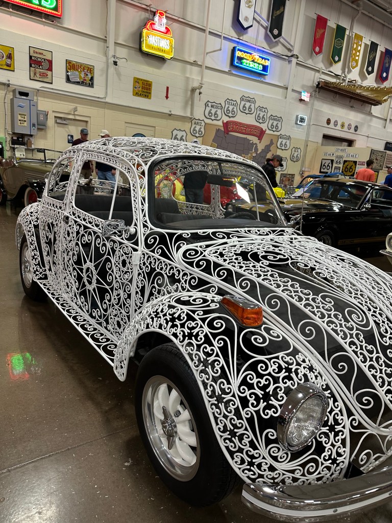 Saturday night gave us the time to stroll around and enjoy the incredible car and pipe organ collection. The car collection included some great old fire trucks from the early 1900s to a Volkswagen Beetle made of decorative white wrought iron and everything in between.