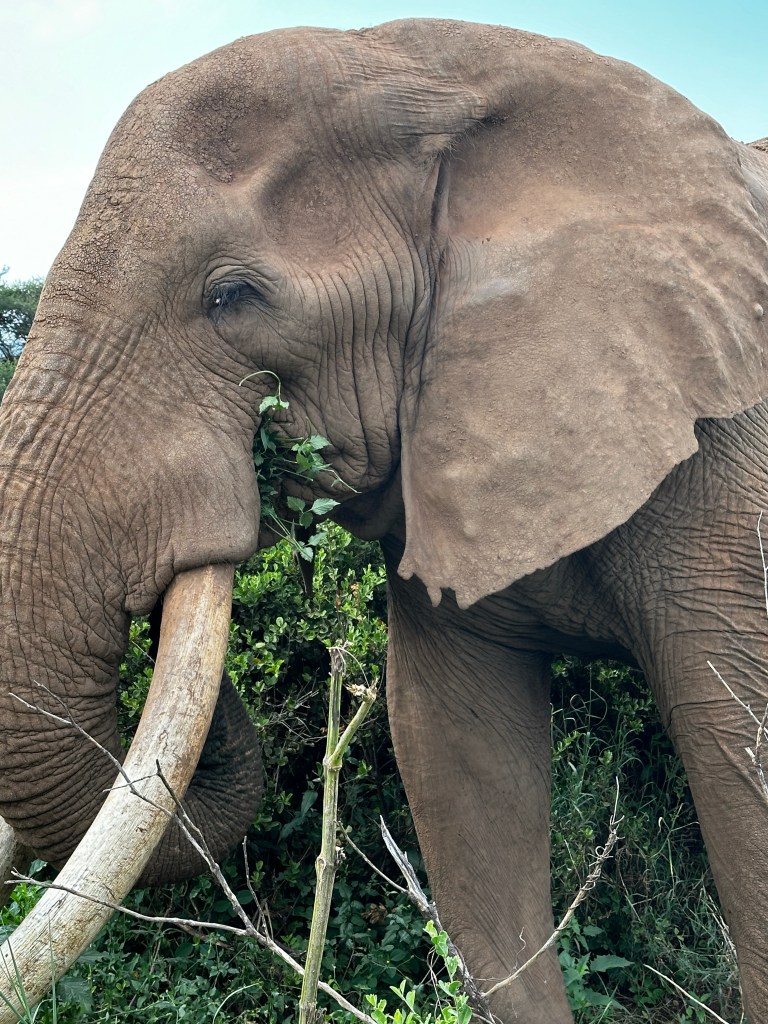 As we were slowly making our way through the bush, we spotted a couple of elephants. They were smaller and their tusks were not full grown. We then saw Craig, his back was to us, but his size was immense. Although we could not see his face or tusks, the guides knew it was him. We made our way up to him, and he was majestic.