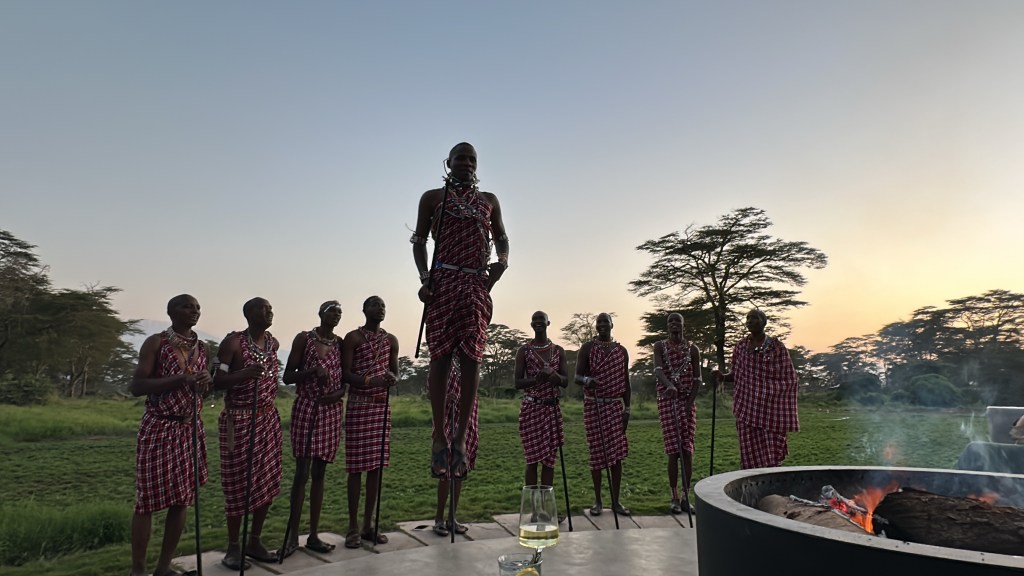 We returned to camp and had our final dinner at Sala’s camp. The evening ended with a traditional Masai dance. The men chanting and jumping.