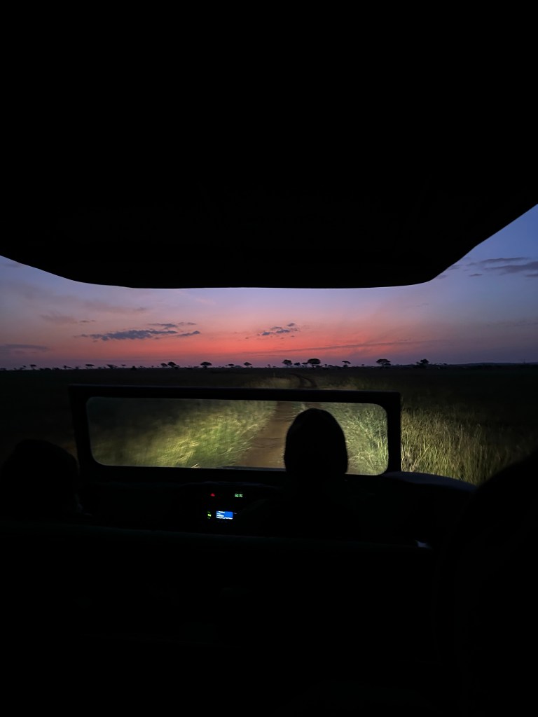 We finished the evening drive by having a “sun downer” (Kenya’s way of saying sunset cocktail). We were up on a hill over looking Borana. It was stunning. As the sun went down the sky was full of gold and blue stripes