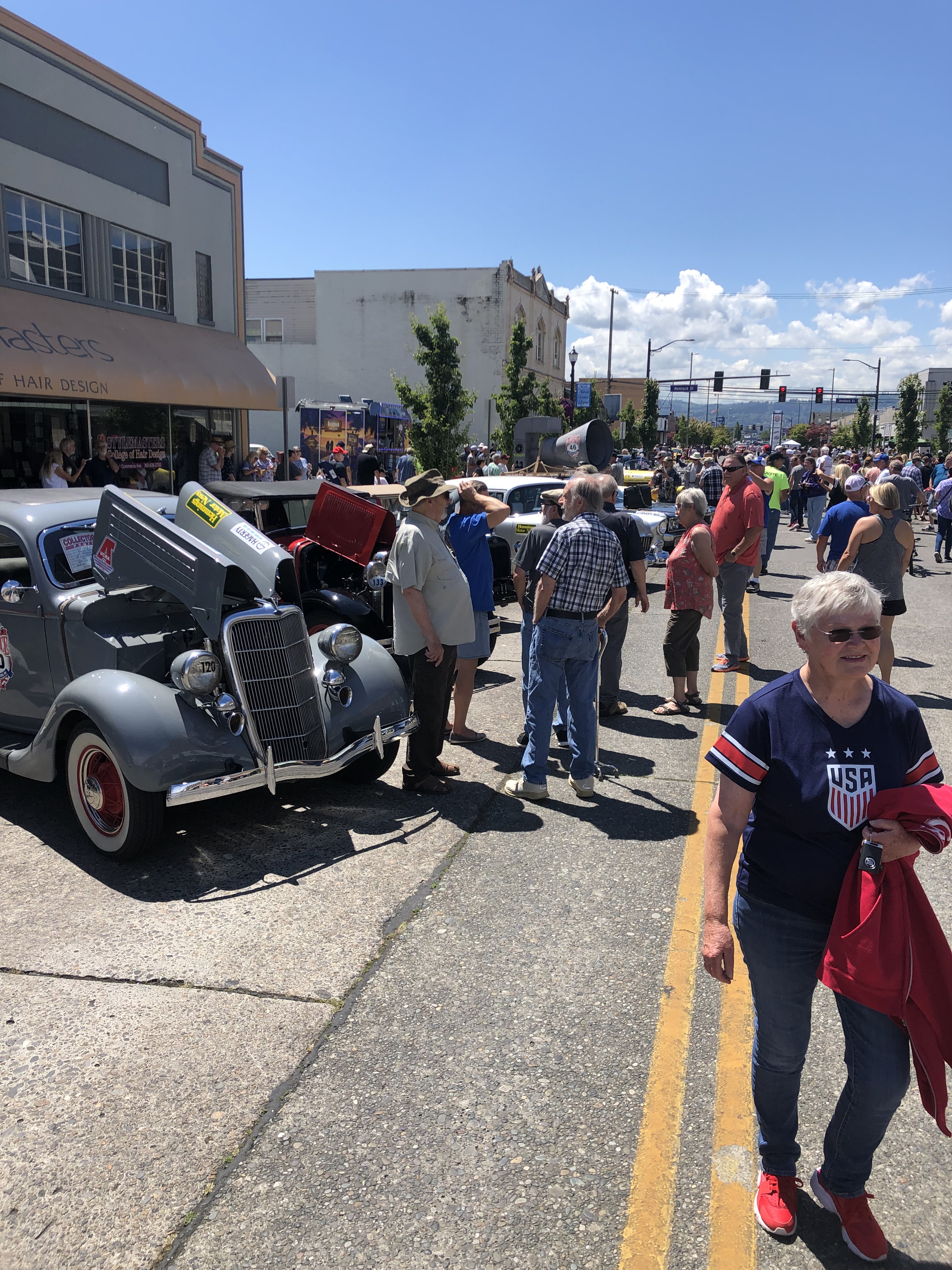 The morning part of rallying ended in Longview, where we were greeted by a huge car show. The locals had lined up 3 or 4 city blocks full of classic and collectible cars. We were offered lunch by a local restaurant, but our salmon snack had filled us up and we had directions to go over before the second half of the day.