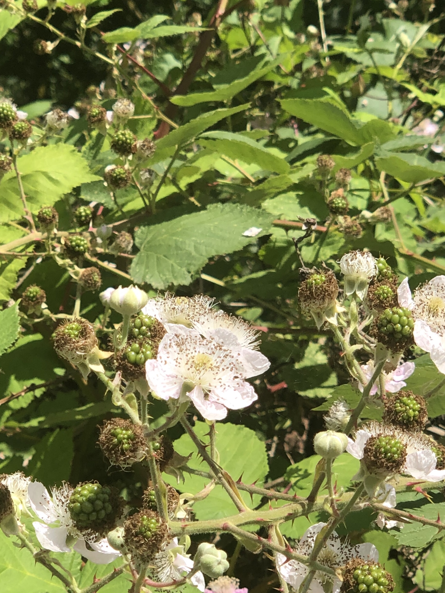 Wild blackberries on the side of the road.