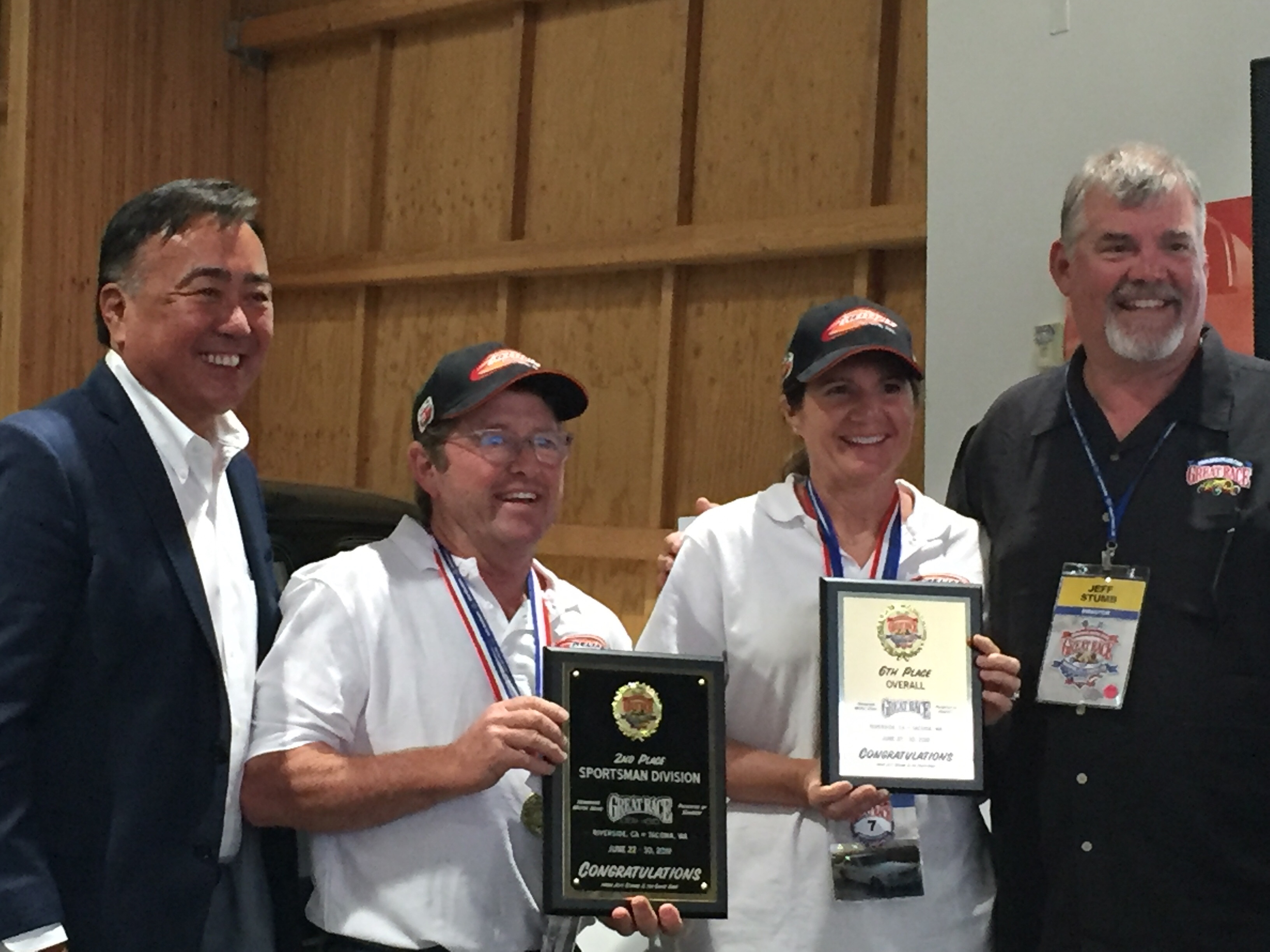 We went into the museum and enjoyed some more of the 3000 car collection of the LeMay family. The museum is well done and has a little something for everyone, not just cars. As we walked through the museum our friends and fellow competitors The Hedkes, gave us a tour of the museum. While walking around, we received a phone call from the race director that we needed to be at our car at 3:30. About 15 minutes later, our friends received the same call. They are in the Expert Class, and we are in the Sportsman Class. We were in the top two cars in our classes.